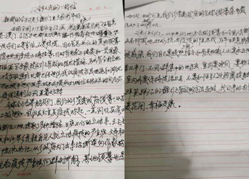 近日,在月亮湾作家村附近居住的八十多岁老人王建国,给霍山县东西溪乡政府送来一封信,信上写道:“我们的乡党委政府从接到通知一直到现在采取了多种措施,日夜不停的宣传车、领导和干部们见人就宣传疫情严重性。父老乡亲们,我们要按照上级指示和权威人士要求去做,用群策群治,引之有效的方法去做,迎来的将是春暖花开,幸福安康。”