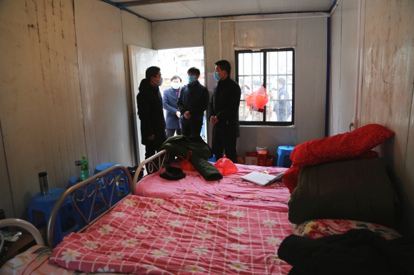 陈明龙在疫情防控卡点值班休息室,了解一线工作人员日常值班生活情况,要求乡党委政府要克服困难,保障好一线工作人员的日常所需