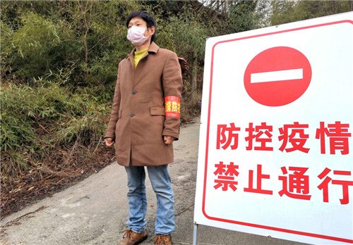 张海是上土寺镇上店村的一名村民组长,上店村也与湖北英山县接壤。疫情防控战役打响后,上店村通往英山县有大小7条道路,每条路都需要人值守,镇驻点干部和村“两委”干部人手不足,而且镇干部还不认识哪些人是外地人。在张海的主动要求下,村里把他安排在上横路口。每天早晨7点半到天黑之前,他都会在路口卡点值守,或者是劝走亲串户的村民回家,或是把村民的诉求反映至村委会。