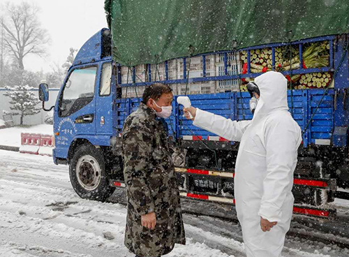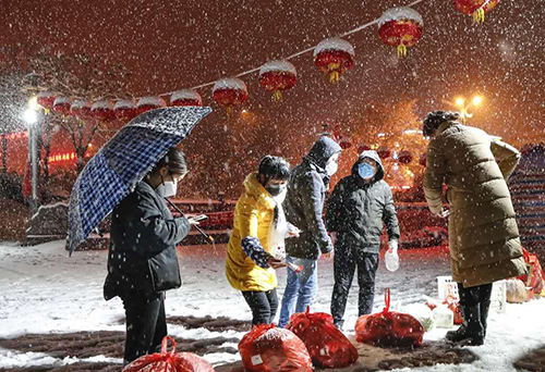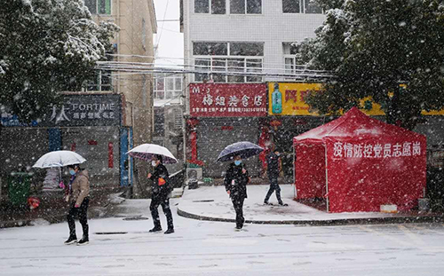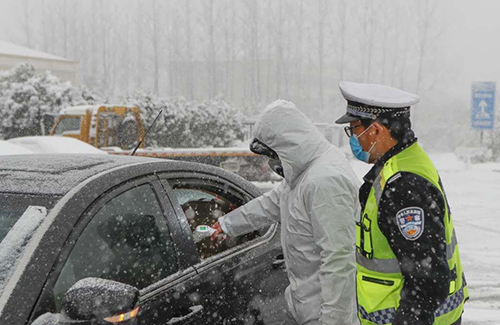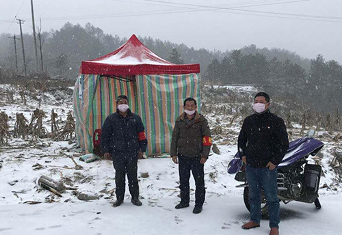 2月15日中午,我县境内普降暴雪,室外温度低至零下。风雪中,在疫情防控一线,广大党员干部始终坚守在疫情防控岗位,战严寒,抗风雪,齐坚守,共战“疫”!