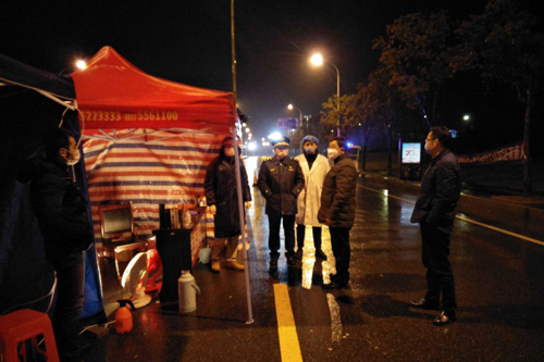 在迎驾厂入口设立疫情防控检查点的日子里,分局负责人作为三个带班组长之一,大多时候一个昼夜轮值首尾两班,时间长达17小时,总能做到接班最早到,换防最后走,积极当好卡口执勤排头兵。分局其他四位同志均为退伍或转业军人,始终保持退役不退志,退伍不褪色和“闻令而动、令出行随”的军人风范。为减少道路封闭对生活物资进入带来的影响,分局主动对接优化服务,每晚提前为进城批发蔬菜商户备好介绍信和通行证,确保凌晨三至四点都能及时“报关”,天气再冷体能再困也从未延误。为减轻农贸市场疫情防控压力,经协调说服仅保留2家4人从事销售服务,自产自销暂停,当地蔬菜一律以优质优价批发入市;菜农利益受到保护,市场货品丰富新鲜,防疫消毒到位规范。在此期间,分局负责人还积极与县商务部门核准的特许经营商联系对接,确保了抗疫最紧时段主要生活物资及时配送,居民基本生活保障从未断档。为全面贯彻落实县指挥部9号通告要求,对16家“无接触”服务商户,在口罩、消毒液、测温仪等配齐上积极帮助联系落实,并将登记表格印制充足分送上门,实现了服务管理互为支撑。到目前为止,其他经营行业如宾馆、饭店、土特产店等79家均按县通告要求全部关停并在醒目位置贴出告示,伴随着巡查监管密度力度不断加大,疫情防控政策措施得到了包括关停商户在内的广大人民群众的理解、支持和配合。与此同时,城管分局积极争取镇上重视支持和有关渠道帮助,先后为环卫工人、市场业主、居民商户发送口罩3000余只,消毒用品50单瓶,协调借用测温仪2支。联防联控短板不断消除,群防群治局面更加稳固,分局党支部战斗堡垒作用和党员先锋模范作用在抗疫斗争中经受了检验和考验,非常之时的城管担当、城管力量、城管温暖也悄然融入了集镇居民对这个冬天的“集体记忆”。
