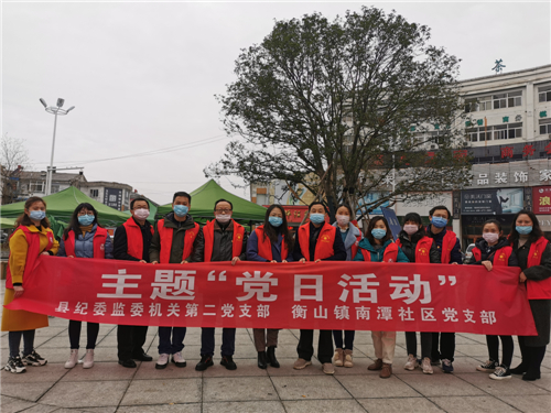 3月31日,县纪委监委第二党支部、衡山镇南潭社区党支部联合开展主题党日活动,本次活动主题是“学习雷锋精神,在统筹做好疫情防控和经济社会发展中更好发挥作用”。