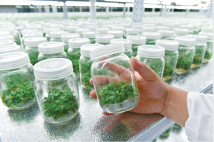 小岗村技术人员在组培苗木。本 报 记 者徐旻昊 摄