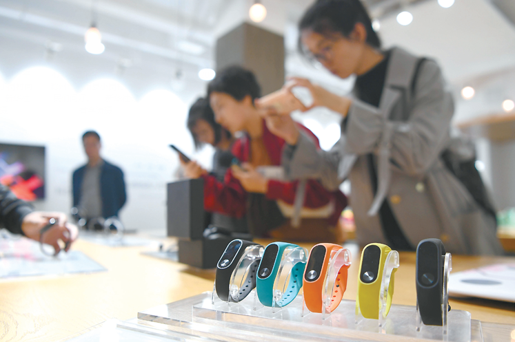 安徽华米科技有限公司新推出的小米智能手环产品。本报记者 吴文兵 摄