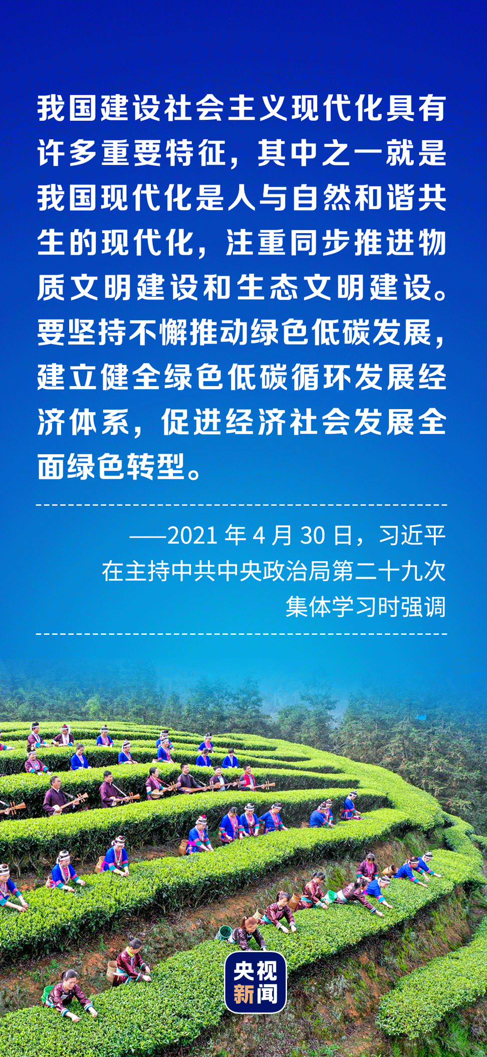 在习近平生态文明思想指引下,中国人民像对待生命一样对待生态环境,形成绿色发展方式和生活方式,坚定走生产发展、生活富裕、生态良好的文明发展道路,建设一个多彩的美丽中国。