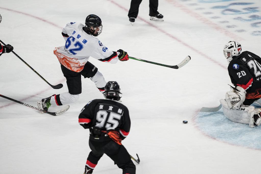 2021年4月4日,五棵松体育中心,运动员在冰球项目测试活动中。新华社记者 彭子洋 摄