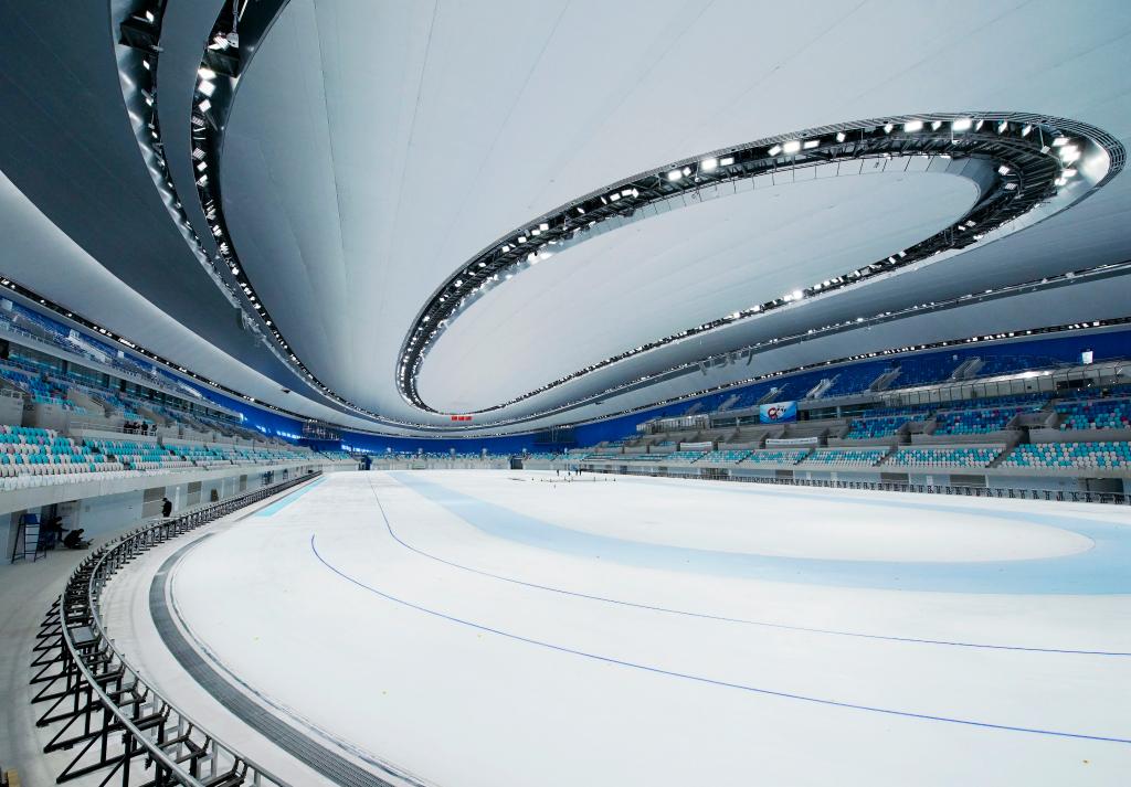 国家速滑馆“冰丝带”首次采用二氧化碳跨临界直冷制冰技术,其赛道被运动员称为“最快冰面”;五棵松体育中心等场馆冰面温差可控制在0.5摄氏度以内,碳排量接近于零……