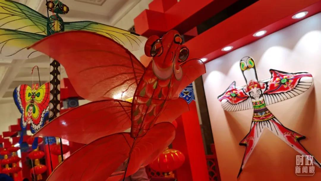 年画、春联、剪纸、风筝、面塑、中国结、京剧脸谱、民乐合奏……这些从中国土地上长出来的非遗作品,匠心独运、光彩照人,让短短数十米的廊道化身为精华版的中国“庙会”。