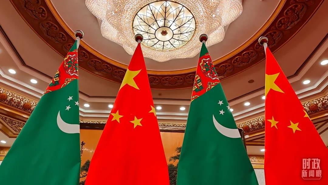 △土库曼斯坦国旗与五星红旗。(总台央视记者杨立峰拍摄)