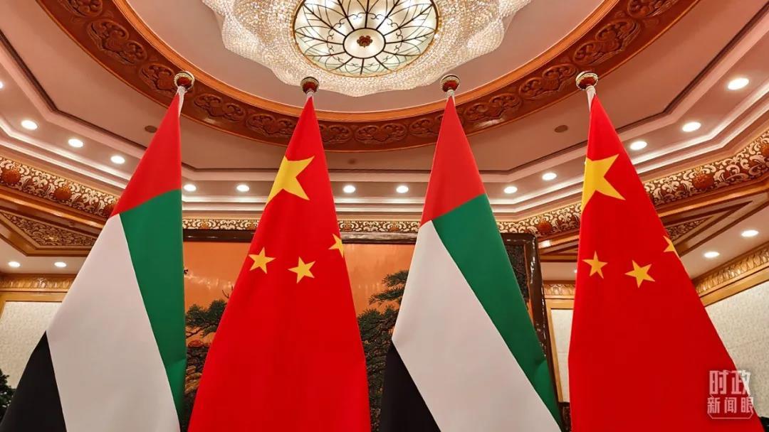 △阿拉伯联合酋长国国旗与五星红旗。(总台央视记者杨立峰拍摄)