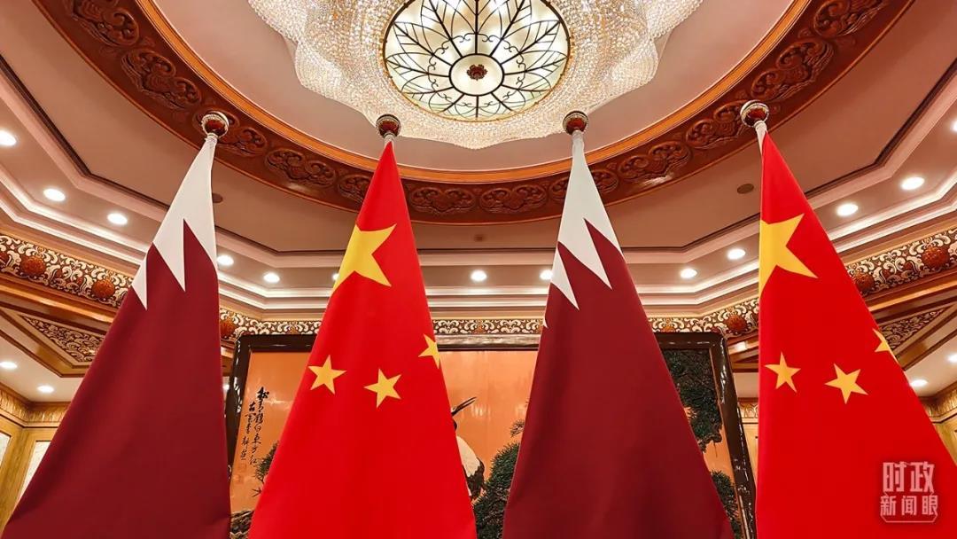 △卡塔尔国旗与五星红旗。(总台央视记者杨立峰拍摄)