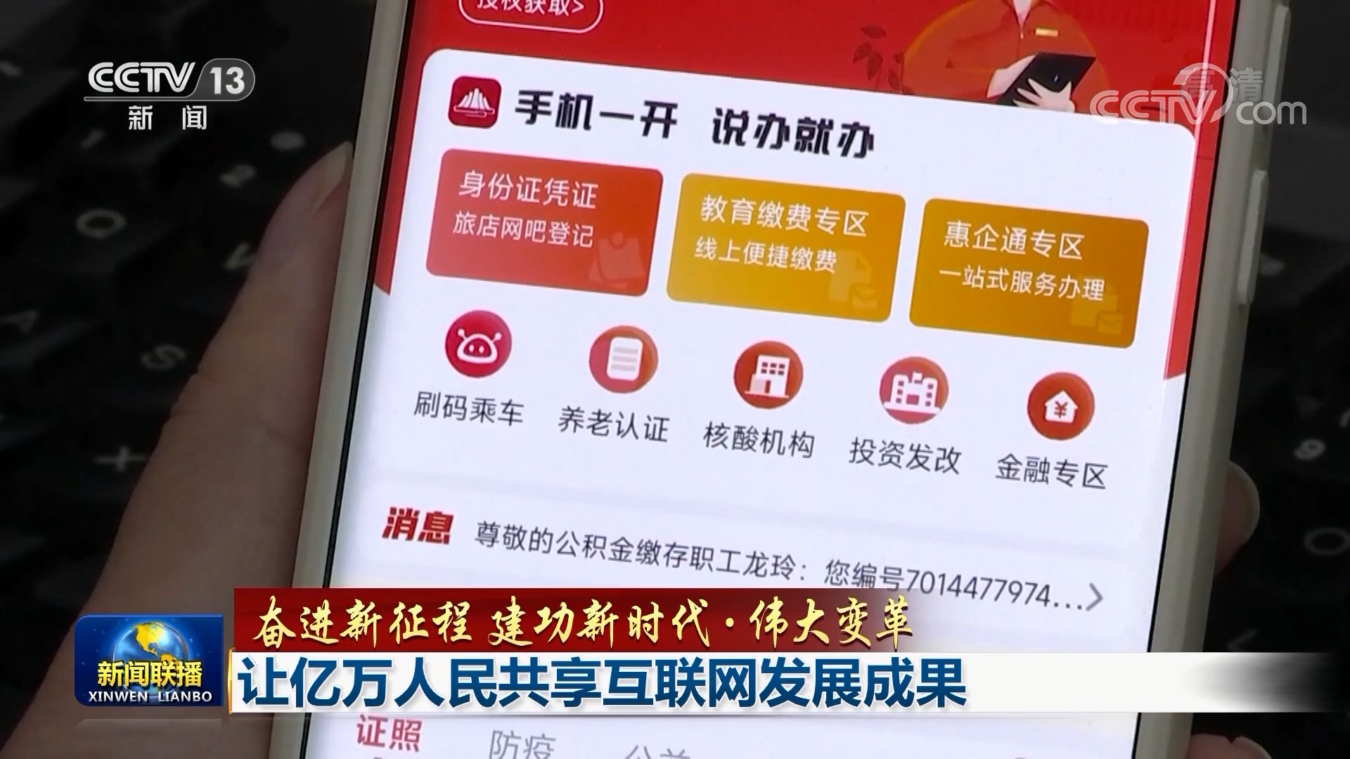央视网消息(新闻联播):习近平总书记强调,网信事业要发展,必须贯彻以人民为中心的发展思想,要适应人民期待和需求,让亿万人民在共享互联网发展成果上有更多获得感。党的十八大以来,我国网信事业取得了历史性成就,人们的生产与生活方式发生了深刻改变。