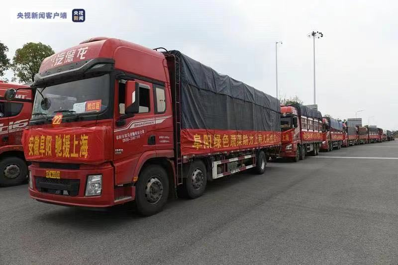 为缓解上海疫情防控期间群众生活物资保障压力,安徽省阜阳市组织调运了约1000吨、价值400余万元生活必需品。3月30日下午,这批援助上海徐汇区、松江区的抗疫物资已经发车。