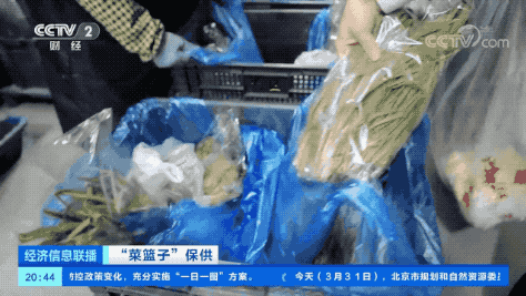 工作人员对刚刚运输来的蔬菜进行分拣和分类,给市民提供不同的选择。每袋就是一个套餐,有韭菜、土豆,还有一些蔬菜,大概一个袋子是有五种品类,工作人员现在也是全员上岗,有近百人加班加点对这些蔬菜进行分类。