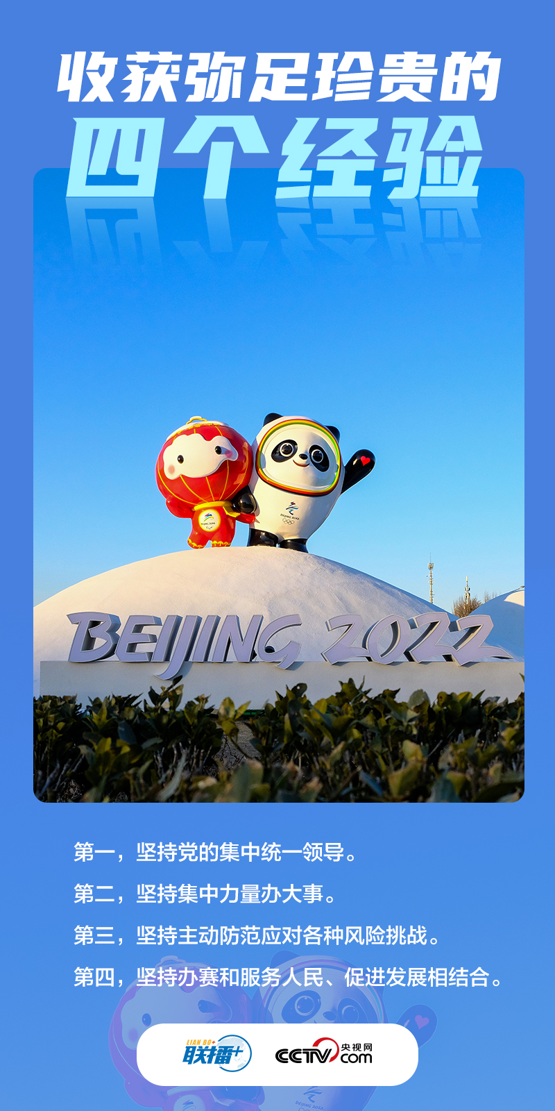 “中国人民同各国人民一道,克服各种困难挑战,再一次共创了一场载入史册的奥运盛会,再一次共享奥林匹克的荣光。”