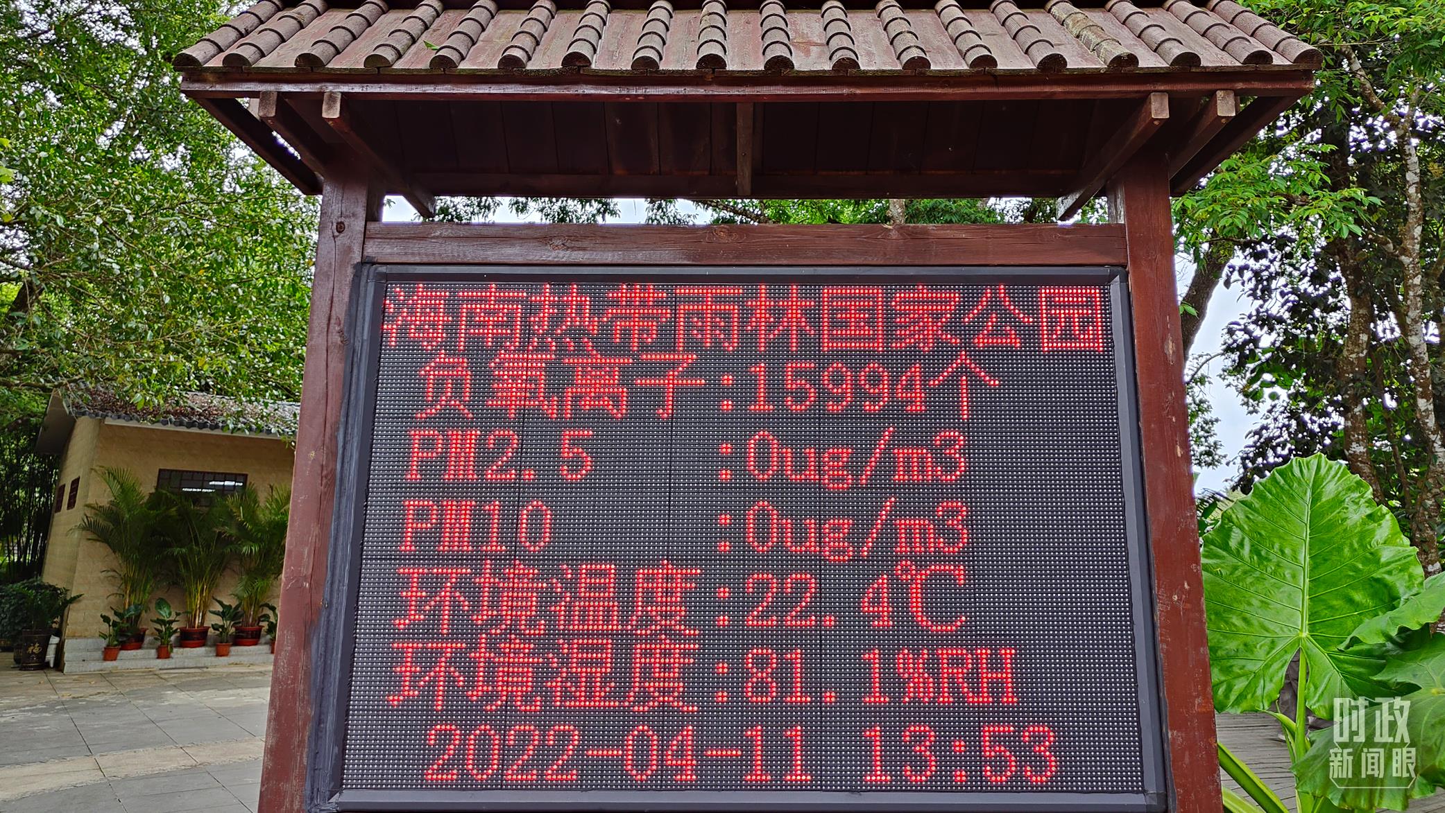 △海南热带雨林国家公园的电子屏显示实时环境质量指数。(总台央视记者杨立峰拍摄)