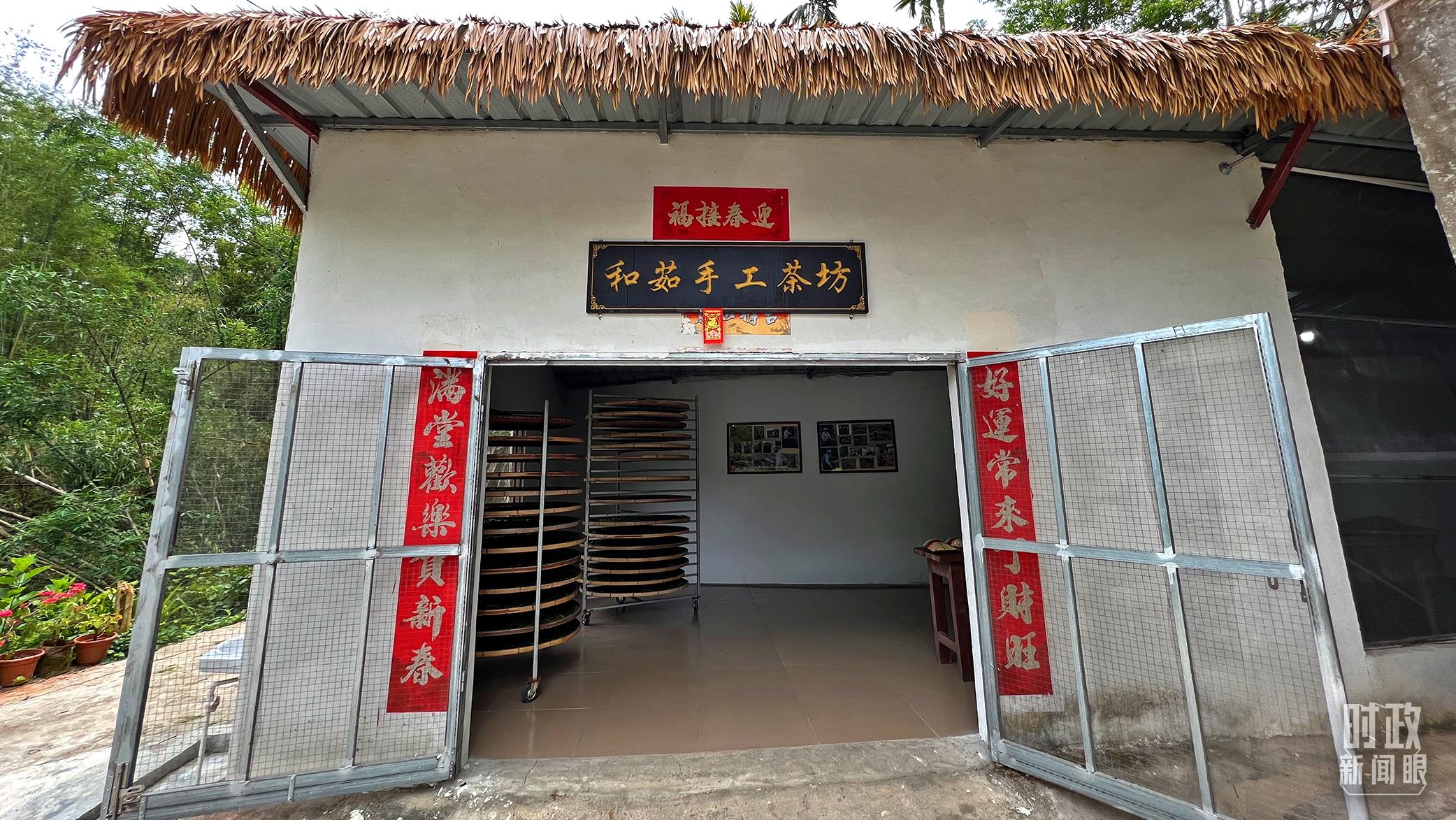 △王柏和、王菊茹夫妇开的手工制茶作坊以及他们制作水满大叶茶时的工作照。(总台央视记者邢彬、央广记者潘毅拍摄)