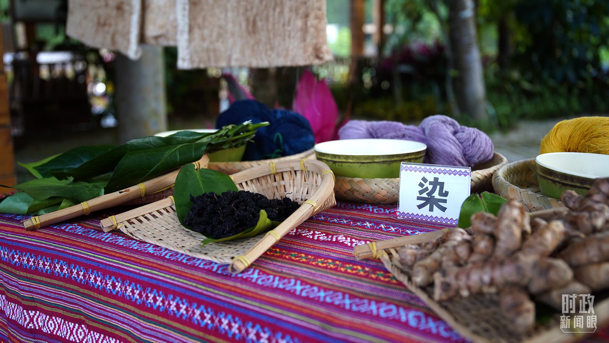 △制作黎锦的染料及来源。(总台央广记者潘毅拍摄)