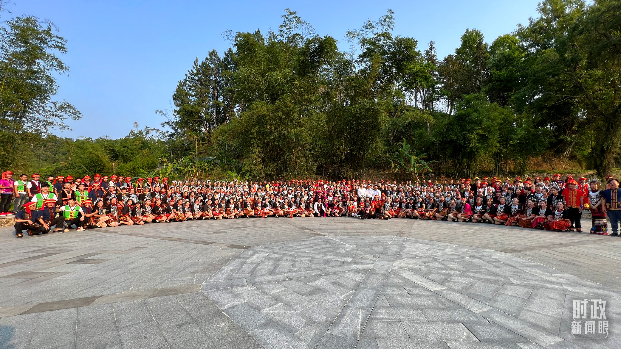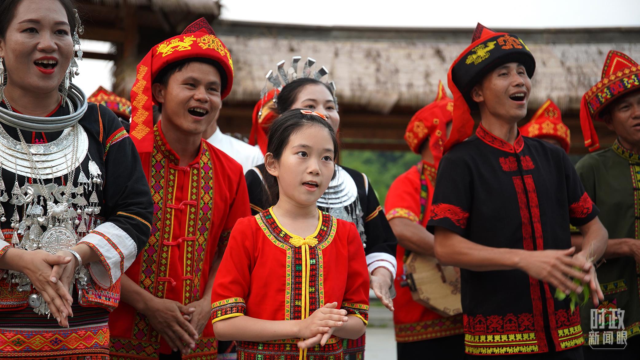 △身着民族服饰的当地村民在毛纳村广场上唱起民歌。(总台央广记者潘毅拍摄)