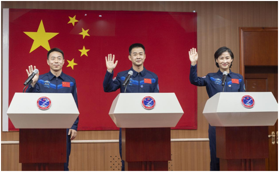 ↑陈冬(中)、刘洋(右)、蔡旭哲3名航天员将执行神舟十四号载人飞行任务,由陈冬担任指令长。 新华社发
