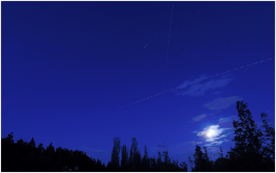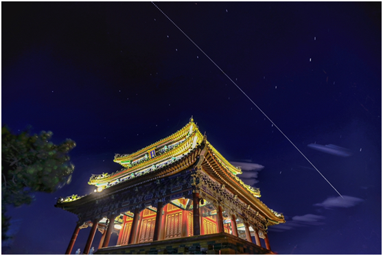 ↑5月13日,国际空间站、中国空间站相继过境北京。(李永刚 摄)