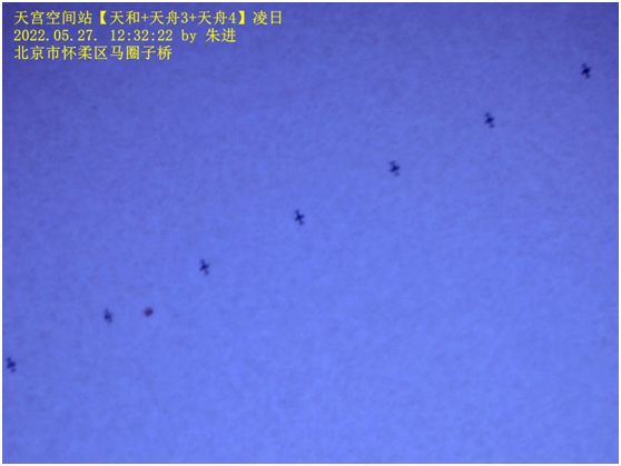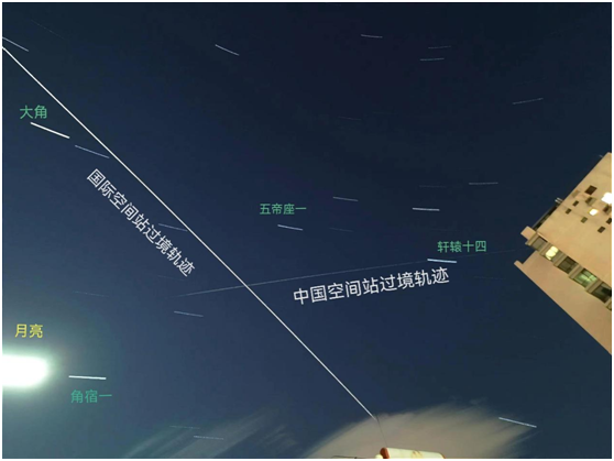 ↑5月15日,国际空间站、中国空间站相继过境北京。(詹宇恒、詹宇泰 摄)
