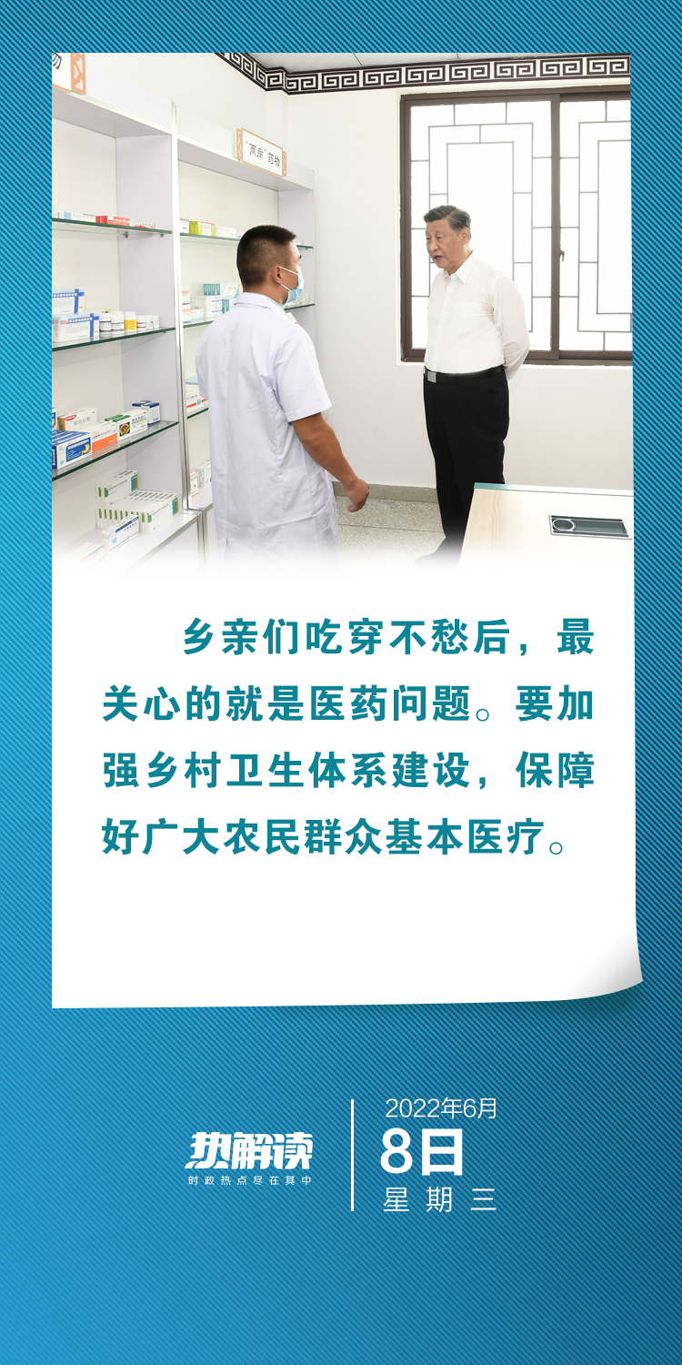 在湖南省郴州市汝城县文明瑶族乡沙洲瑶族村,总书记走进村卫生室,了解基本医疗保障情况。他叮嘱当地干部:“要聚焦解决‘看病难、看病贵’问题,深化公立医院改革,加强县级医院综合能力建设,加强标准化村卫生室和城市社区卫生机构建设,健全公共卫生和疾病预防控制体系。”