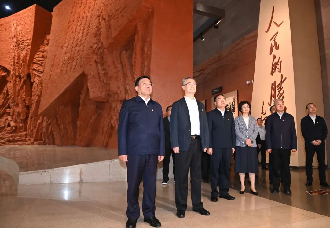 位于巢湖之滨的渡江战役纪念馆,是国内规模最大、史料最全的纪念渡江战役历史专题场馆。上午8时30分许,韩俊等来到渡江战役纪念馆广场,满怀崇敬之情瞻仰渡江战役总前委群像,深切缅怀革命先辈的丰功伟绩。步入纪念馆,韩俊等沿着习近平总书记考察路线,依次参观“战前形势”“战役准备”“突破江防”“战役胜利”“人民支前”“英烈业绩”等展厅,认真听取讲解、不时停下脚步、了解史实细节,在一张张历史图片、一件件文献实物、一个个文字记录中重温那段风雨如磐的岁月。随后,韩俊等认真观看了习近平总书记考察渡江战役纪念馆的视频资料,他强调,要深刻领会习近平总书记“渡江战役的胜利是靠老百姓用小船划出来的”“为什么历史和人民选择了中国共产党,为什么必须坚持走中国特色社会主义道路、实现中华民族伟大复兴”等重要论述,引导广大党员干部衷心拥护“两个确立”、忠诚践行“两个维护”,坚定不移沿着习近平总书记指引的方向,把革命先辈开创的伟大事业不断推向前进。在渡江战役烈士名录厅,韩俊驻足凝视,指出,安徽是一片红色的土地,今天的幸福生活是千千万万革命烈士用生命和鲜血换来的,我们一定要讲好红色故事、传承红色基因,把红色江山守护好、建设好。