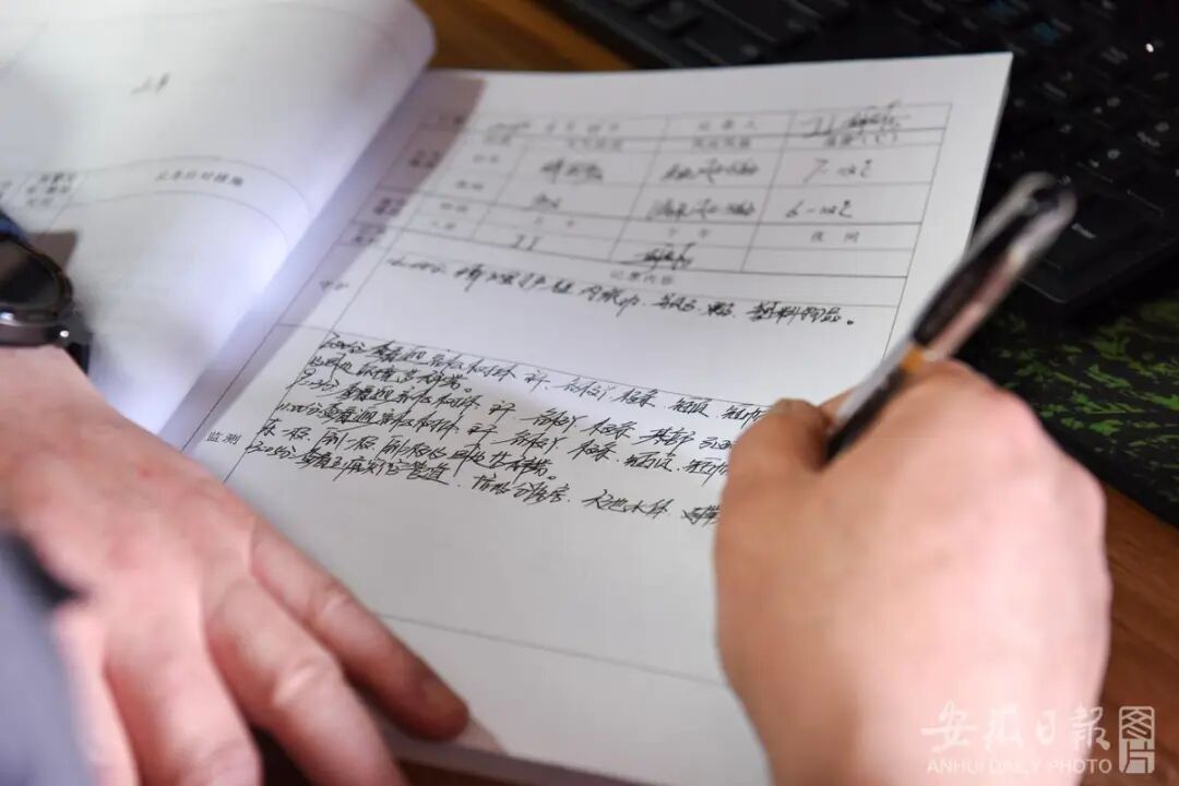 胡晓春作为守护迎客松时间最长的守松人,13年来,他记了84本日记,留下超140万字的《迎客松日记》。温沁 摄