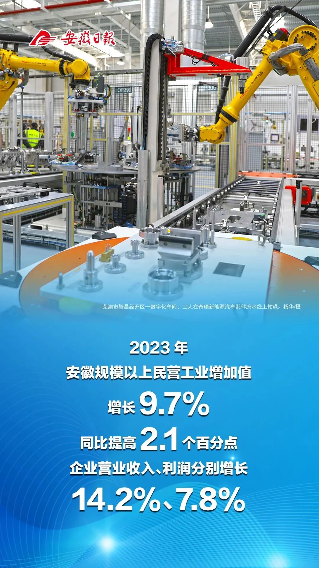 2023年,全省规模以上民营工业增加值增长9.7%、同比提高2.1个百分点,企业营业收入、利润分别增长14.2%、7.8%。