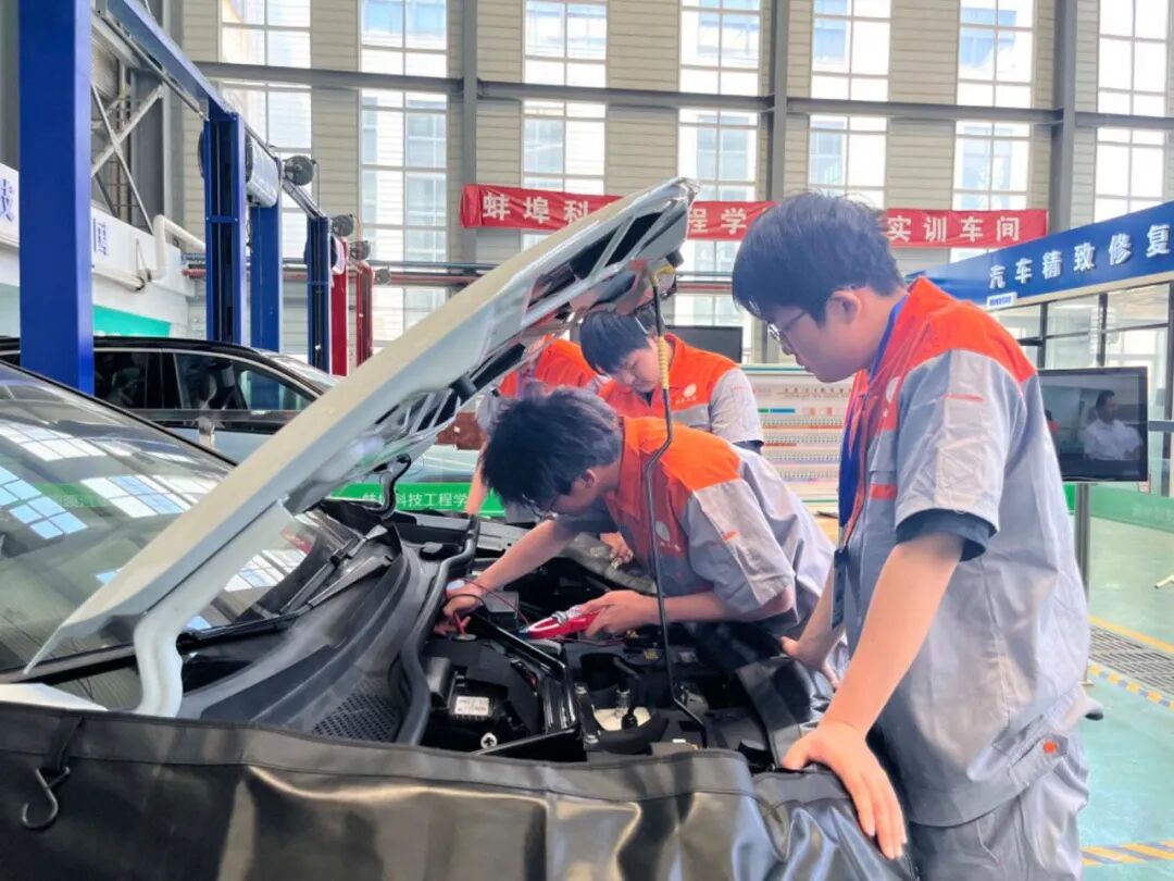 蚌埠技师学院(蚌埠科技工程学校)的实训课上,学生们正在为新能源汽车做故障检测。孙言梅 摄