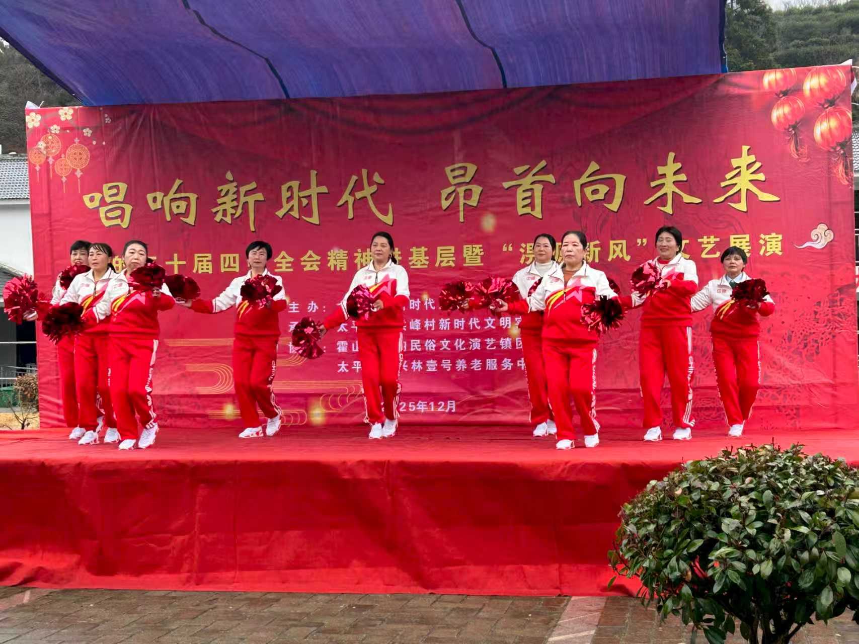 12月23日,由太平畈乡文明实践所主办,太平畈乡洪峰村文明实践站承办的学习贯彻党的二十届四中全会精神进基层“淠源新风”文艺展演,在位于洪峰村的太平畈乡兴林壹号养老服务中心成功举办。