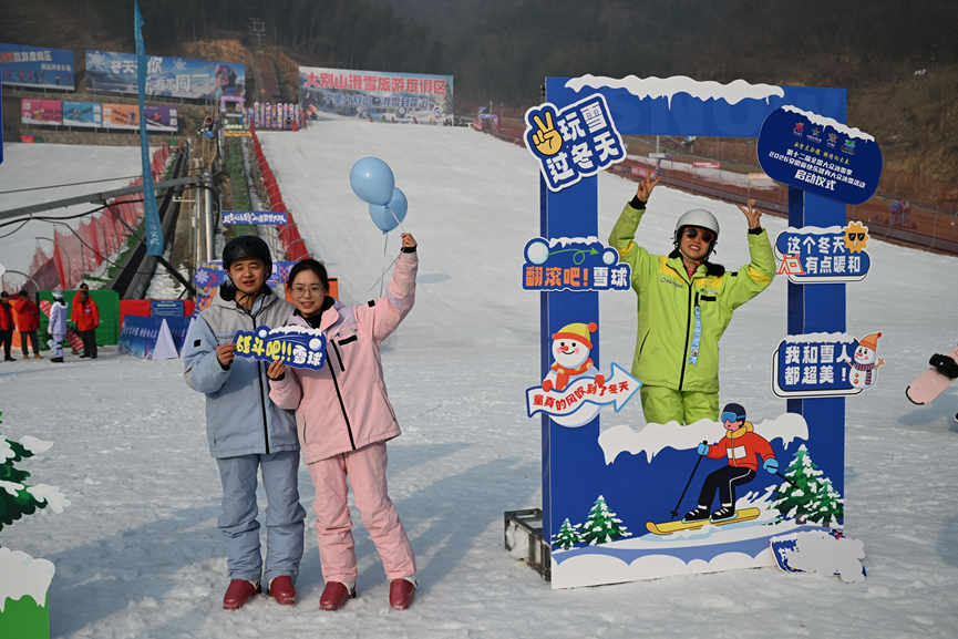 随着气球腾空飞扬,本次冰雪活动正式启动。紧接着,丰富多彩的冰雪嘉年华活动同步拉开帷幕:精彩绝伦的滑雪表演,流畅的动作、酷炫的技巧赢得现场观众阵阵喝彩;专业的滑雪技能教学,让冰雪运动爱好者们沉浸式感受冰雪运动的独特魅力;创新推出的系列冰雪小游戏,让冰雪体验趣味升级,兼具趣味性与挑战性;另一侧的农产品展销区同样热闹非凡,霍山黄芽、霍山石斛等地方特色产品琳琅满目,吸引了众多嘉宾和游客驻足品鉴、争相选购,将生态之味与特色之美带回家。