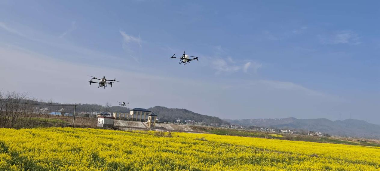 机械强农提效。在下符桥张氏家庭农场,油菜“一促四防”飞防现场观摩会正在进行。伴随着旋翼的嗡鸣声,植保无人机在技术人员操控下低空掠过油菜花海,均匀喷洒出混配药肥。此外,该镇还组织了再生稻机械化基质盘育秧观摩,覆盖全镇300亩以上粮油种植大户和再生稻生产主体,推广新机具、新技术。