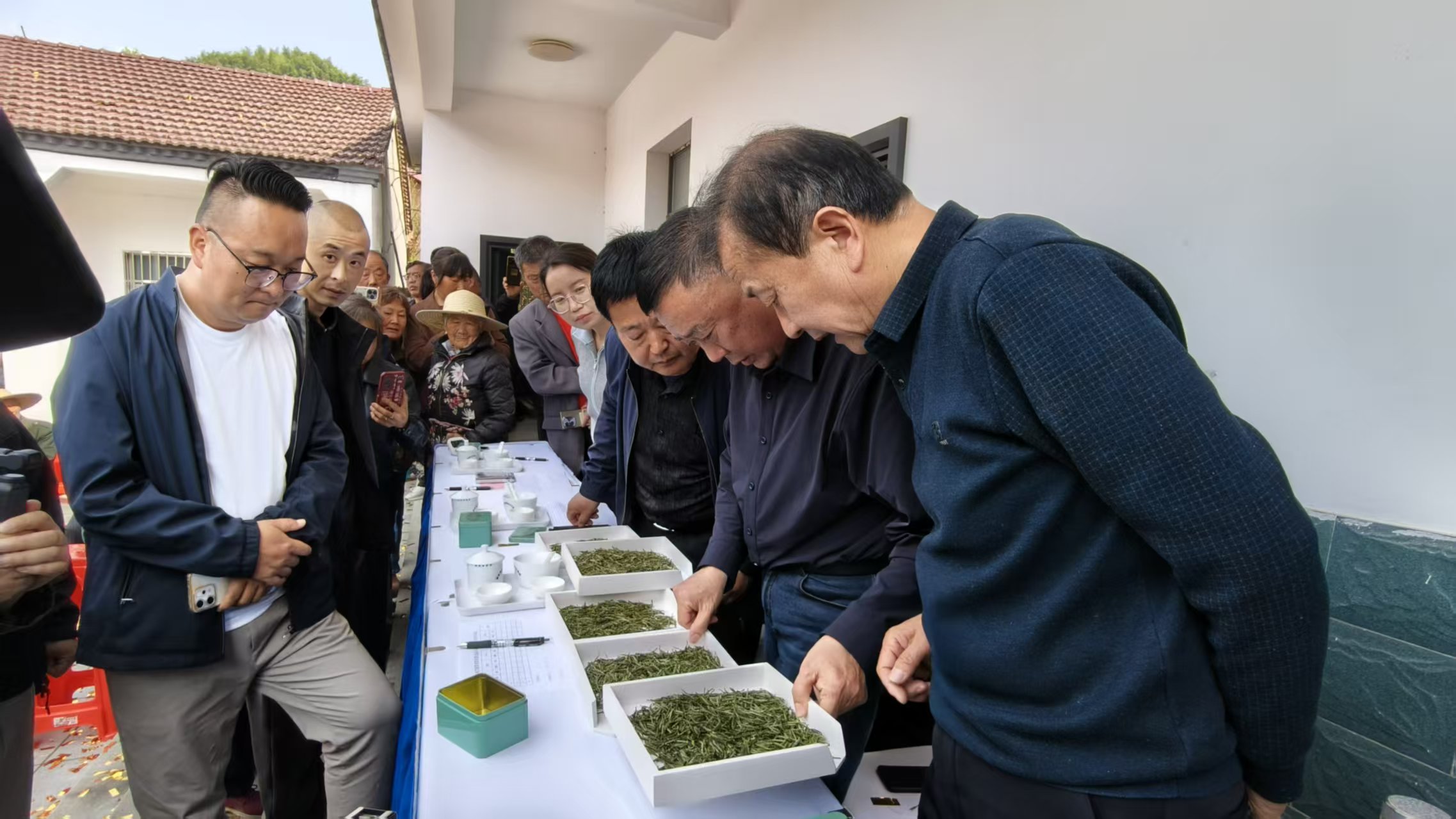 长桌一字排开,五份编号的极品黄芽静待评判。从县里请来的赵登权、王少武、徐志明等几位茶叶专家落座。周围早已挤满观众,小孩子骑在父亲肩头,老人踮起脚尖,年轻人纷纷举着手机录像。