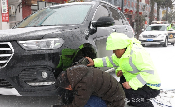 针对山区道路积雪较大的情况,民警、辅警对沿途道路行驶车辆进行安全驾驶提醒,提醒过往车辆低速慢行,保持车距。民警在巡逻过程中,帮助受困车辆安装防滑链、及时脱困,确保群众和车辆通行安全。
